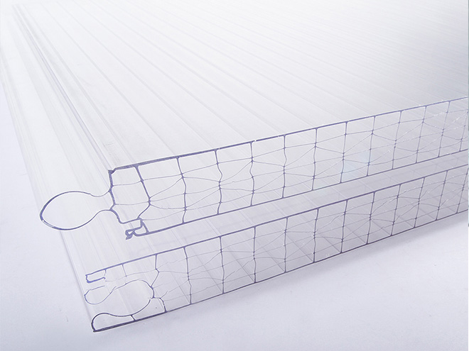 對(duì)插PC幕墻板采用進(jìn)口支鏈結(jié)構(gòu)和進(jìn)口聚碳酸酯PC原料制造。多層菱形結(jié)構(gòu)使得產(chǎn)品結(jié)構(gòu)強(qiáng)度穩(wěn)定,保溫隔熱效果好,創(chuàng)新的插接口設(shè)計(jì)使得安裝簡(jiǎn)便,內(nèi)置橢圓形插口連接使板材需要增加垂直固定型材輪廓,因?yàn)闇p少了安裝成本并增強(qiáng)整體美感。廣泛應(yīng)用于飛機(jī)庫(kù)、采光幕墻、室內(nèi)隔斷及高側(cè)窗。通過(guò)原料特殊改性,可滿(mǎn)足客戶(hù)對(duì)紅外隔熱,晶亮效果,防霧滴,表面啞光等多種不同功能要求。